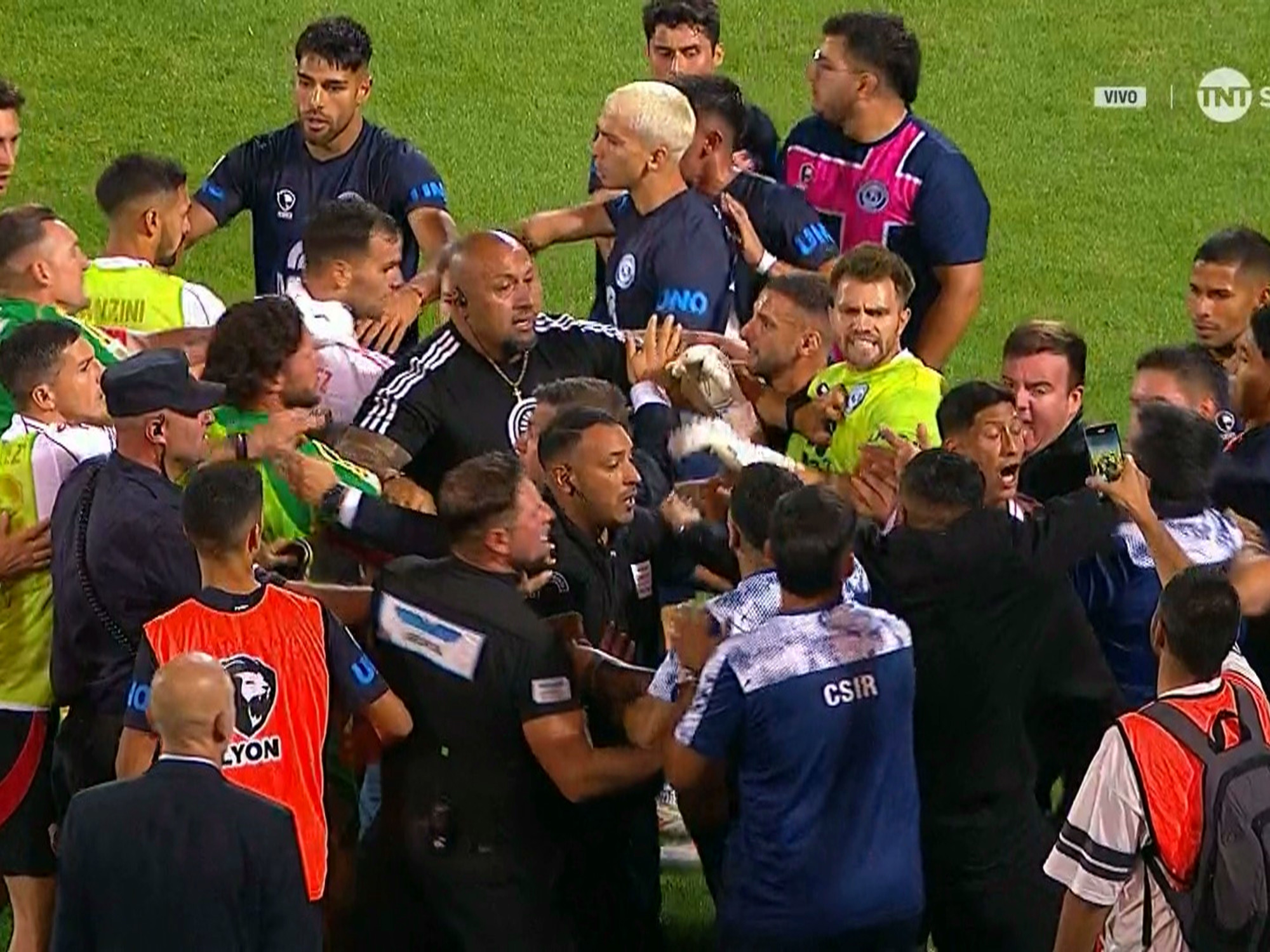 La pelea se desató en el momento en el que el delantero colombiano fue a celebrar el gol que hizo su compañero a la tribuna donde estarían ubicados los simpatizantes del elenco visitante, situación que enfureció hasta a los suplentes rivales.