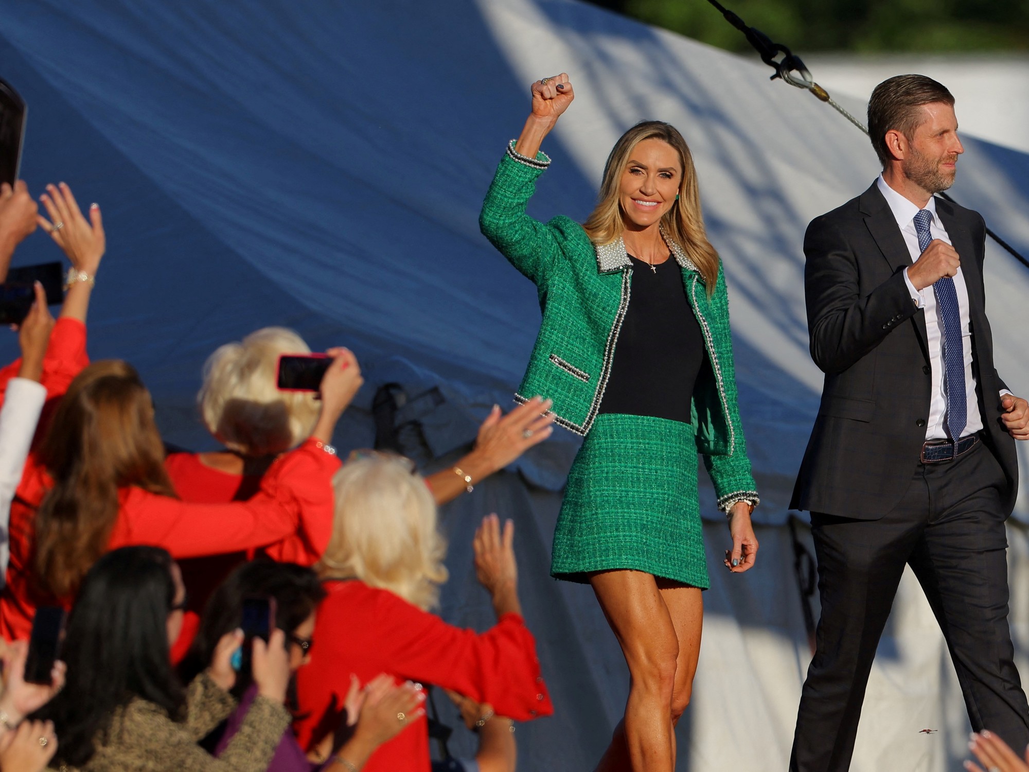 Lara Trump, es la esposa de Eric, el menor de los tres hijos que tuvo el presidente electo de los Estados Unidos con Ivana Trump (los otros dos son Donald Jr. e Ivanka). Entrenadora personal, y presentadora de tevé se convirtió en una figura central de la campaña de su suegro que, agradecido, siempre la colocó en un lugar visual destacado. Hoy preside el Comité Nacional Republicano.