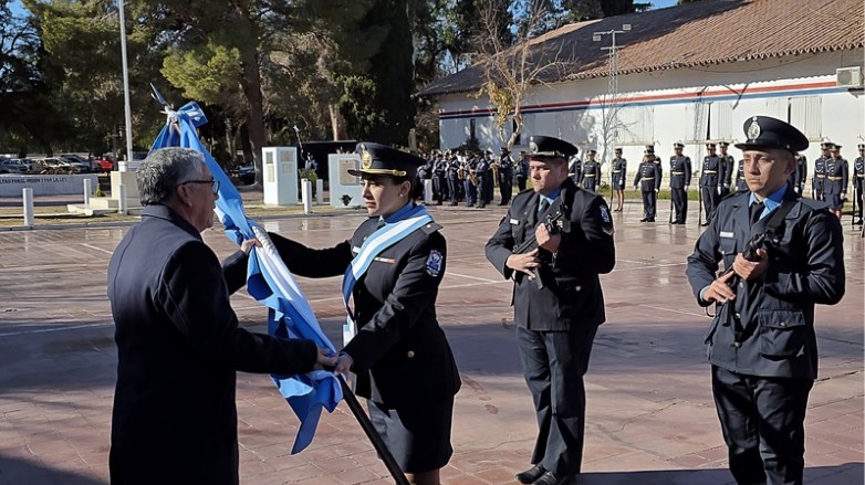 Este nuevo cuerpo de bandera está integrado por personal policial y del Servicio Penitenciario Provincial que cursa el tercer año de la Tecnicatura en Criminalística, reflejando el espíritu de vocación de servicio y compromiso con la seguridad pública. El emblema nacional, símbolo de unión y patriotismo, será portado por quienes se prepararon para velar por el orden en la sociedad.