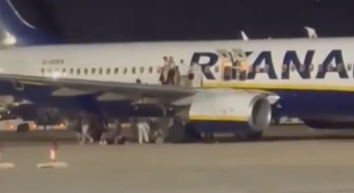 Aunque la empresa Ryanair dijo en un comunicado que “los pasajeros fueron desembarcados mediante las rampas inflables”, no es eso lo que se ve en las imágenes del incidente.