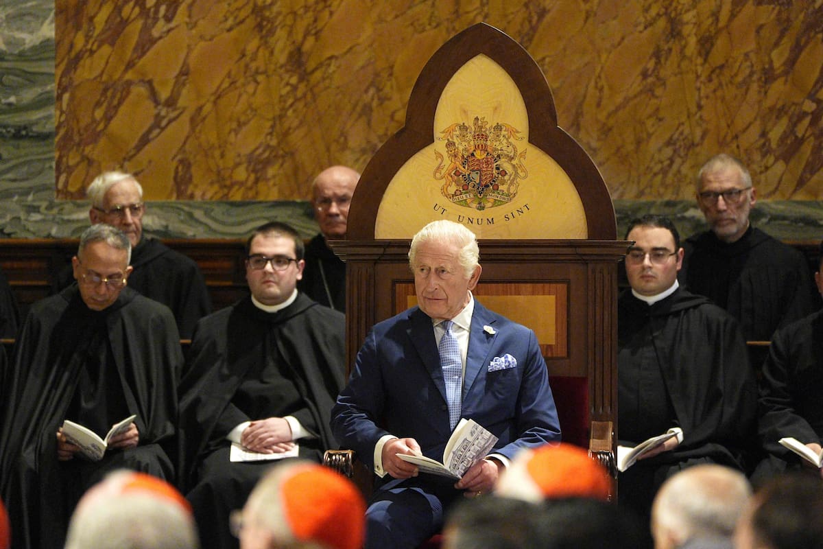 La oración, a la que asistieron, entre otros, cardenales de la curia romana y altos prelados de la Iglesia Anglicana, duró unos veinte minutos. El carácter ecuménico se reflejó desde el himno inicial, compuesto por san Ambrosio de Milán, doctor de la Iglesia, interpretado en una traducción inglesa de san John Henry Newman, teólogo inglés que fue anglicano durante la mitad de su vida y católico durante la otra. Newman, figura del siglo XIX, será proclamado doctor de la Iglesia el próximo 1 de noviembre por el Papa.En su canonización, el 13 de octubre de 2019, en la Plaza de San Pedro, estuvo presente el propio rey Carlos.